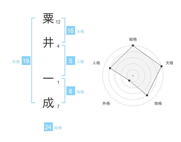 粟井 一成さんの総格は24画の5点!