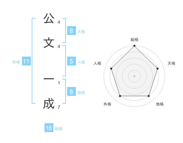 公文 一成さんの天格は8画の4点!