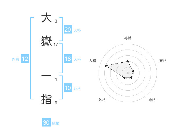 大嶽 一指さんを姓名の画数から五運を鑑定