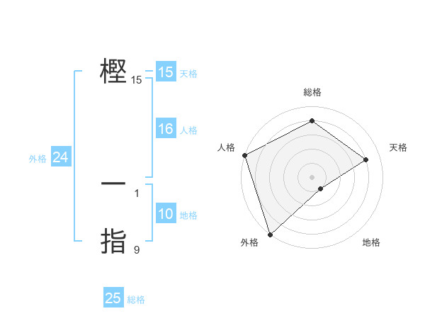 樫 一指さんの総格は25画の4点!
