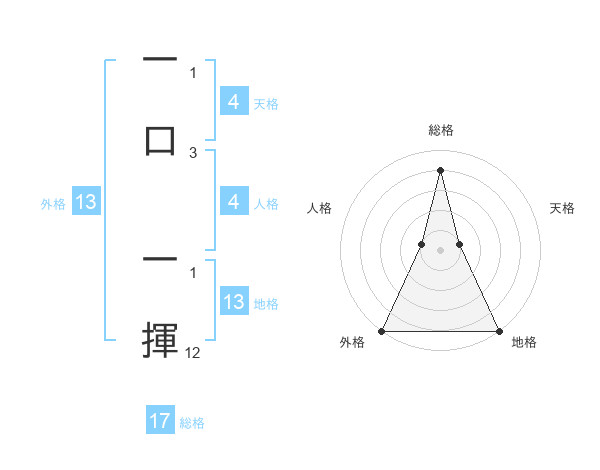 一口 一揮さんの外格は13画の5点!