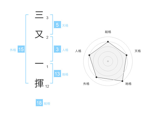 三又 一揮さんの地格は13画の5点!