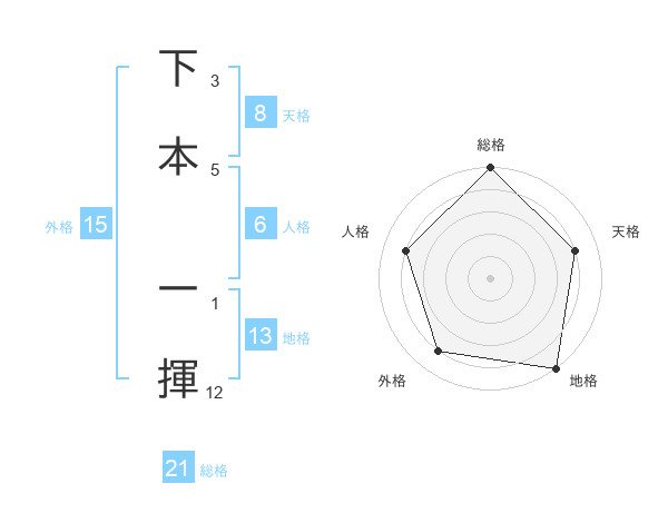 下本 一揮さんの地格は13画の5点!