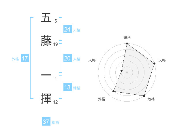 五藤 一揮さんの総格は37画の5点!