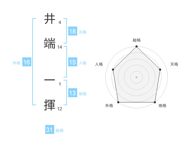 井端 一揮さんの総格は31画の5点!