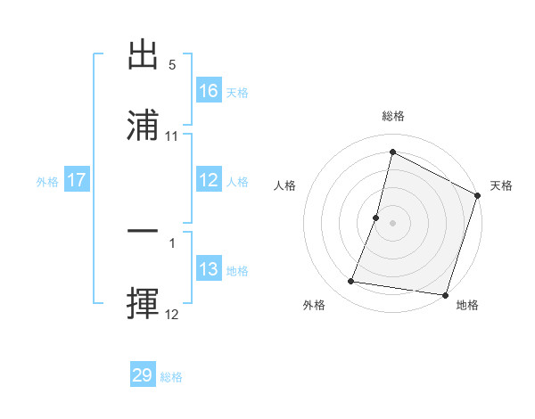 出浦 一揮さんを姓名の画数から五運を鑑定