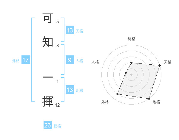 可知 一揮さんの天格は13画の5点!