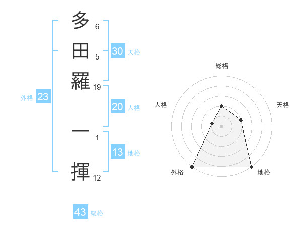 多田羅 一揮さんの総格は43画の2点!