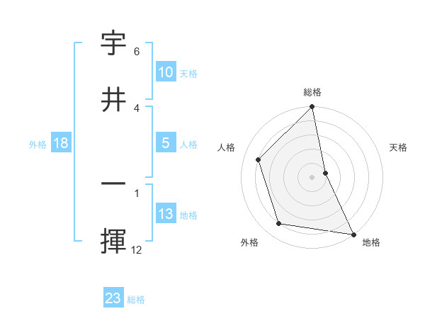 宇井 一揮さんを姓名の画数から五運を鑑定