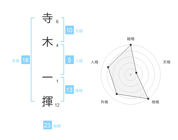 寺木 一揮さんの総格は23画の5点!