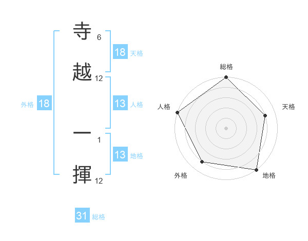 寺越 一揮さんを姓名の画数から五運を鑑定
