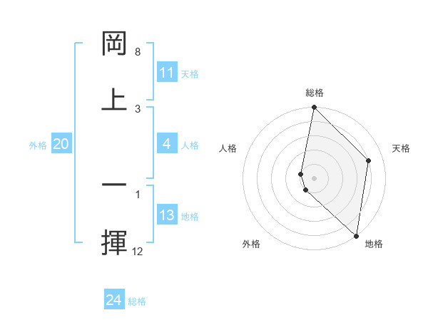 岡上 一揮さんを姓名の画数から五運を鑑定