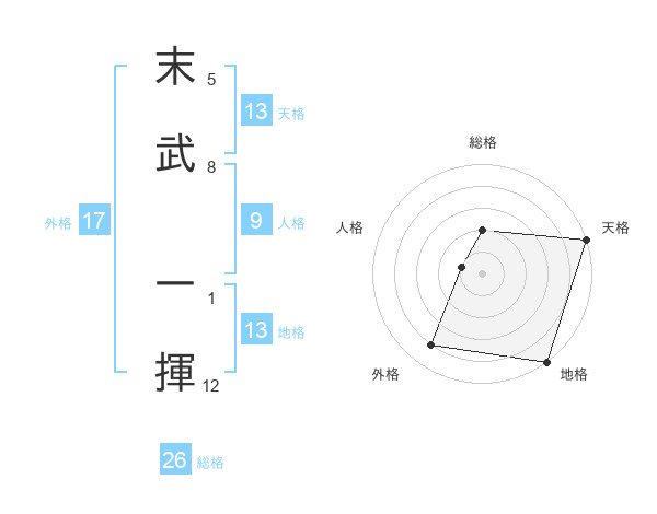 家系が持つ宿命的な運勢を表します。祖先から受け継いだ苗字ですので自分の力が及びません。家柄を象徴します。
