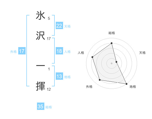 氷沢 一揮さんを姓名の画数から五運を鑑定