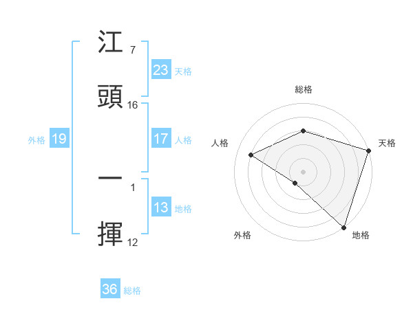 江頭 一揮さんを姓名の画数から五運を鑑定