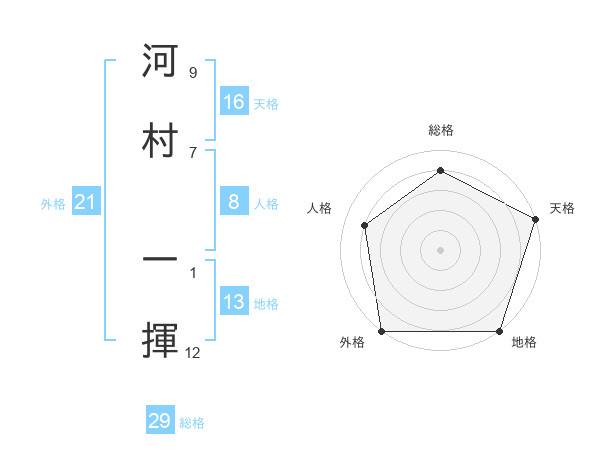 河村 一揮さんの外格は21画の5点!
