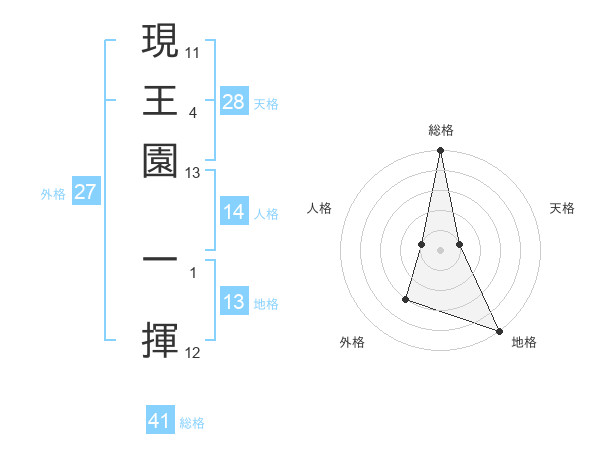 現王園 一揮さんを姓名の画数から五運を鑑定