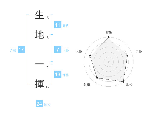 生地 一揮さんの地格は13画の5点!