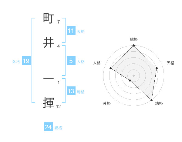 町井 一揮さんの総格は24画の5点!