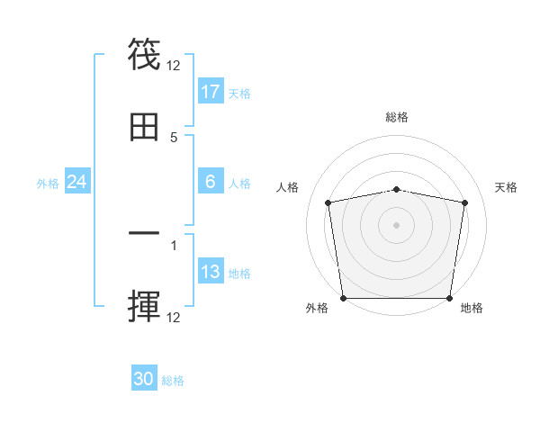 筏田 一揮さんを姓名の画数から五運を鑑定