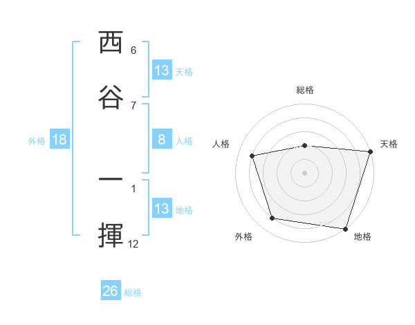 西谷 一揮さんの天格は13画の5点!