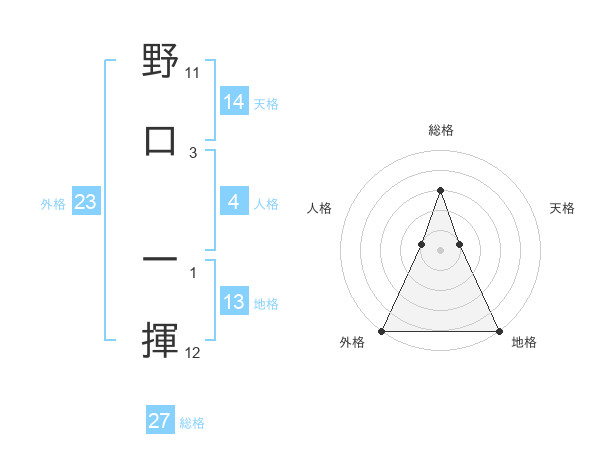 野口 一揮さんの総格は27画の3点!