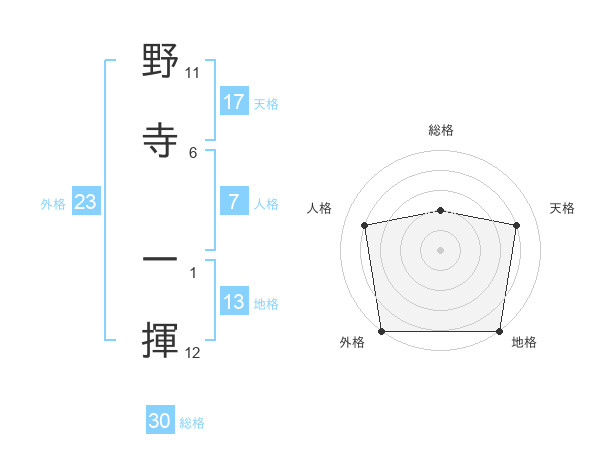 野寺 一揮さんの総格は30画の2点!