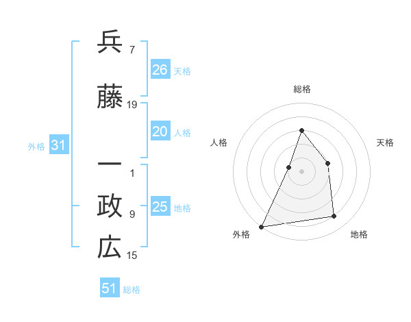 兵藤 一政広さんを姓名の画数から五運を鑑定
