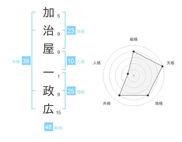 加治屋 一政広さんを姓名の画数から五運を鑑定