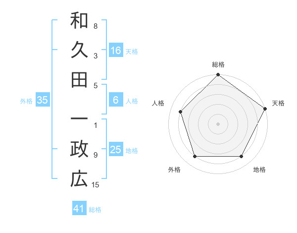 和久田 一政広さんの総格は41画の5点!