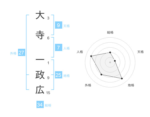 大寺 一政広さんを姓名の画数から五運を鑑定