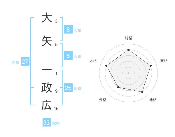 大矢 一政広さんの総格は33画の4点!