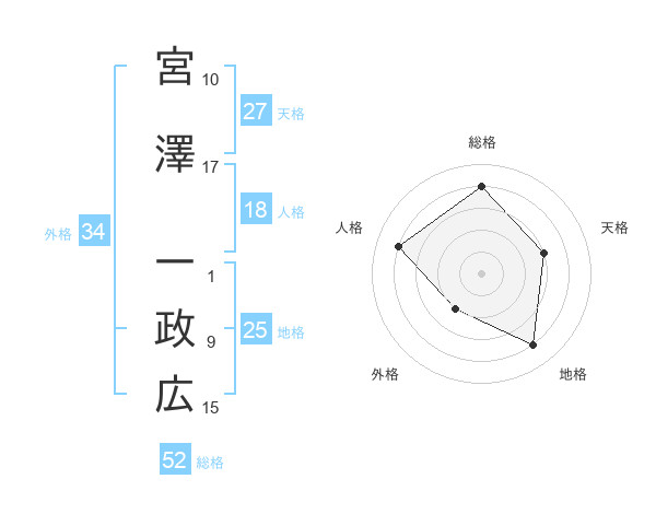 宮澤 一政広さんを姓名の画数から五運を鑑定