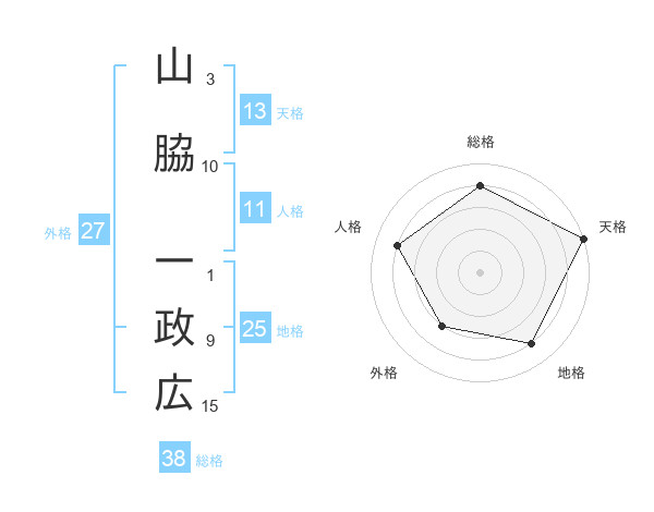 山脇 一政広さんの総格は38画の4点!