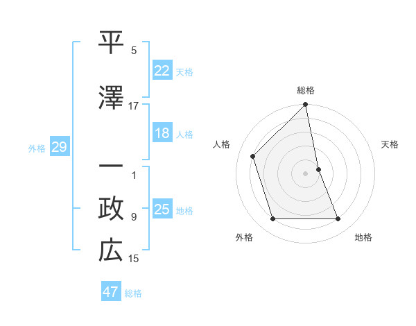 平澤 一政広さんを姓名の画数から五運を鑑定