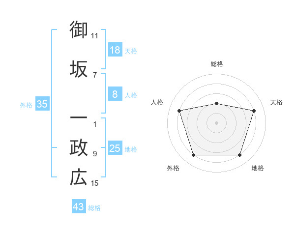 御坂 一政広さんを姓名の画数から五運を鑑定