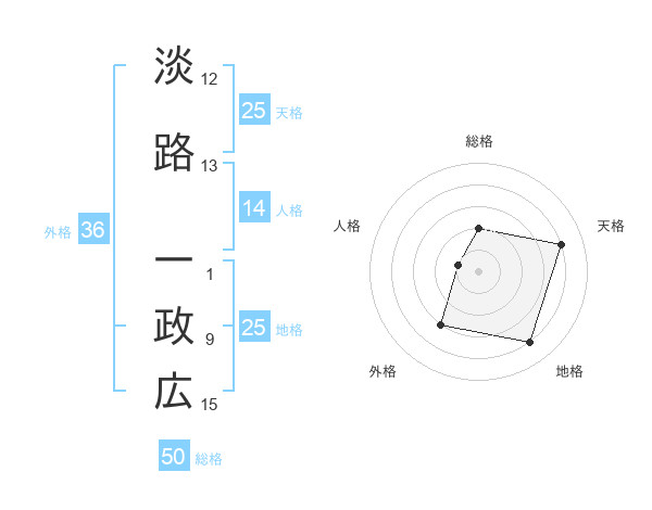 淡路 一政広さんを姓名の画数から五運を鑑定