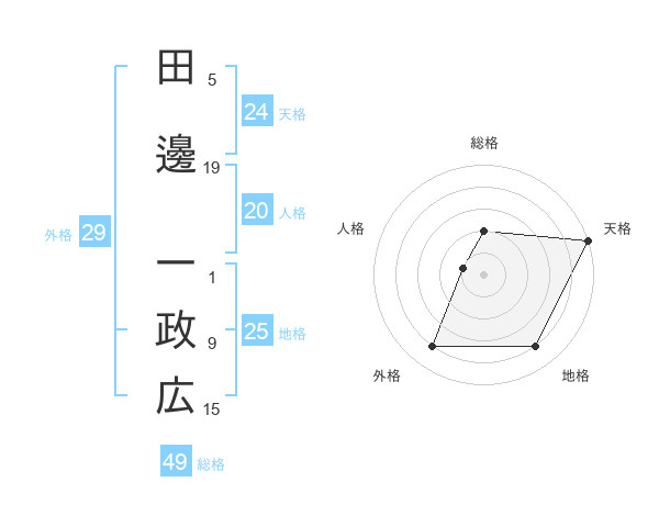 田邊 一政広さんを姓名の画数から五運を鑑定