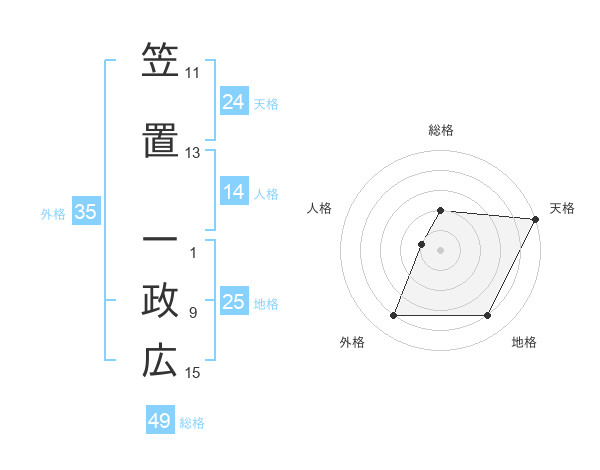笠置 一政広さんを姓名の画数から五運を鑑定