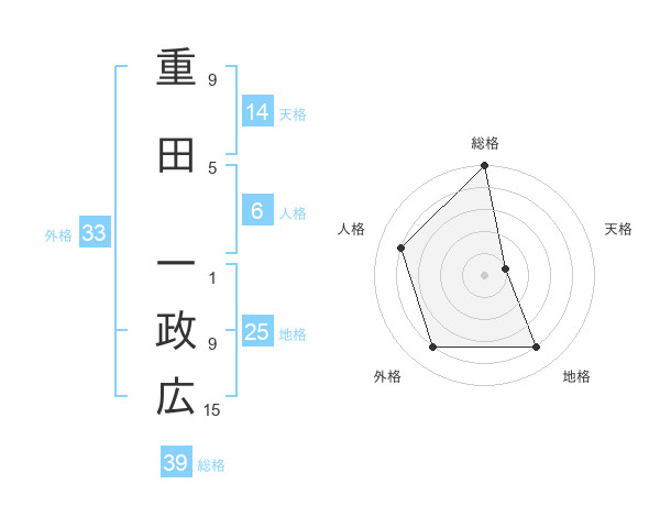 重田 一政広さんの総格は39画の5点!