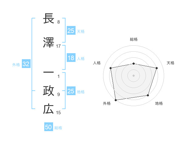 長澤 一政広さんの地格は25画の4点!