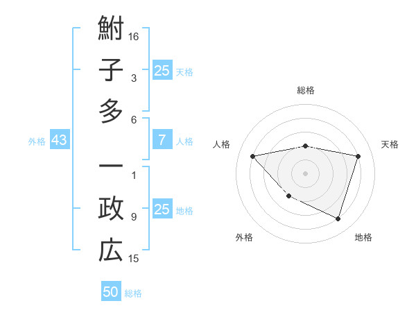 鮒子多 一政広さんを姓名の画数から五運を鑑定