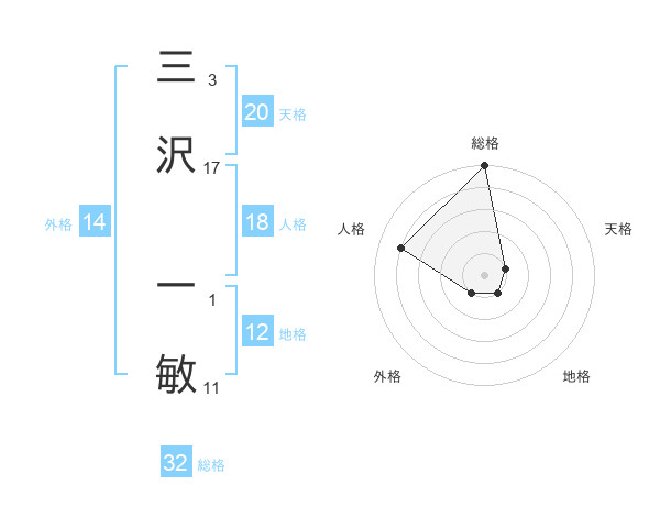 三沢 一敏さんを姓名の画数から五運を鑑定