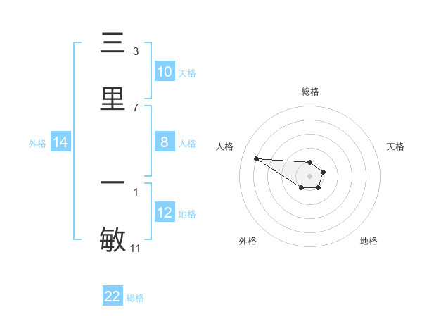 三里 一敏さんの総格は22画の1点!