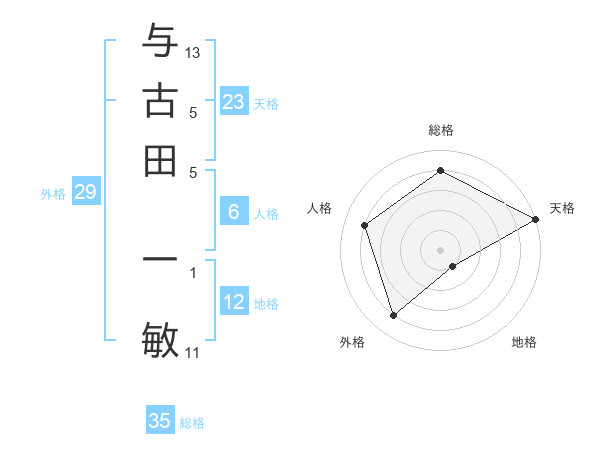 与古田 一敏さんを姓名の画数から五運を鑑定