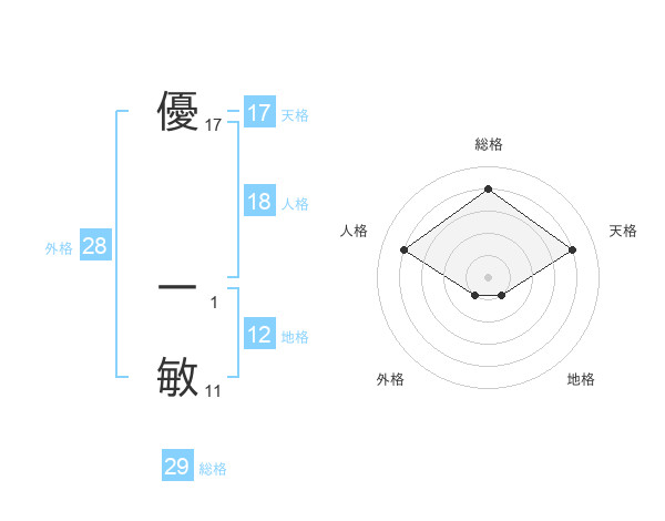 優 一敏さんの天格は17画の4点!