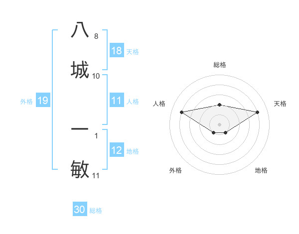 八城 一敏さんの総格は30画の2点!