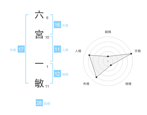 六宮 一敏さんを姓名の画数から五運を鑑定