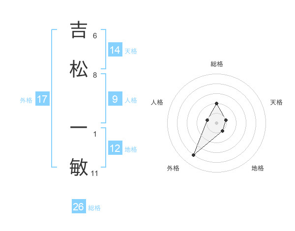 吉松 一敏さんの天格は14画の1点!
