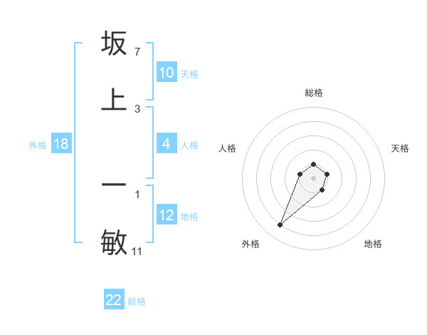 坂上 一敏さんの総格は22画の1点!